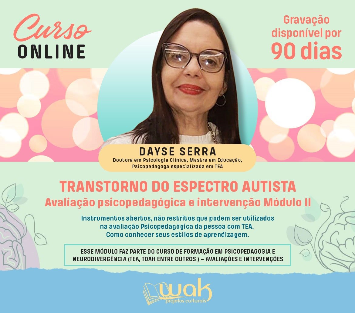 Curso On-line Gravado 265: Transtorno do Espectro Autista – Avaliação Psicopedagógica e Intervenção Módulo II – Dayse Serra